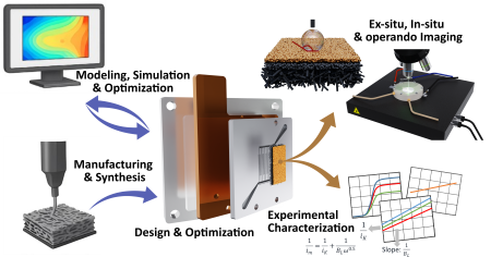 • Modeling, simulation, and optimization of flow, transport, and electrochemical reactions in porous architectures.