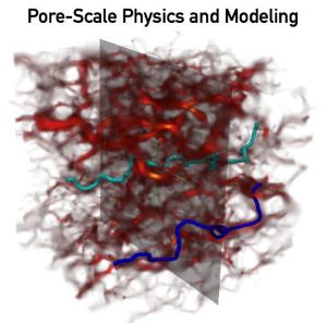 - Development of upscaling frameworks (nano- to pore-scale, pore- to Darcy-scale), including reactive transport, geomechanics, and multiphase multicomponent flows.